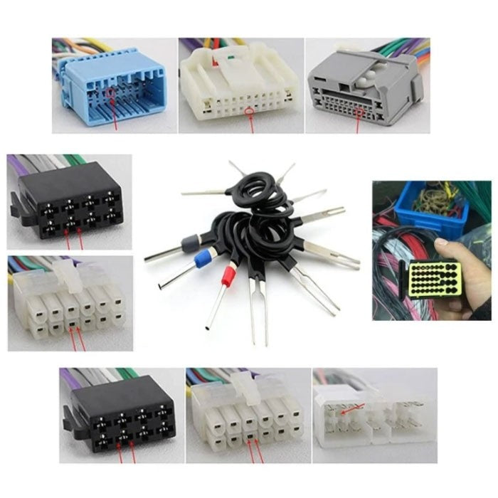 Комплект инструменти за вадене на пинове от букси и клеми.