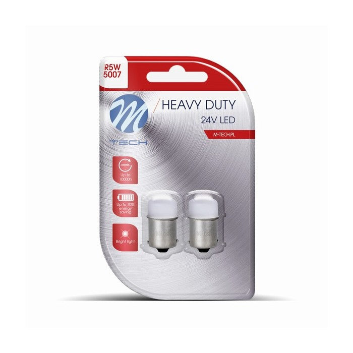 Серията M-Tech R5W LED LB е предназначена да замени съществуваща крушка R5W/R10W BA15s. Предимството на избора на LED крушка пред стандартната халогенна е по-дълъг живот, по-ниска консумация на енергия, както и по-бързо време за включване/изключване.