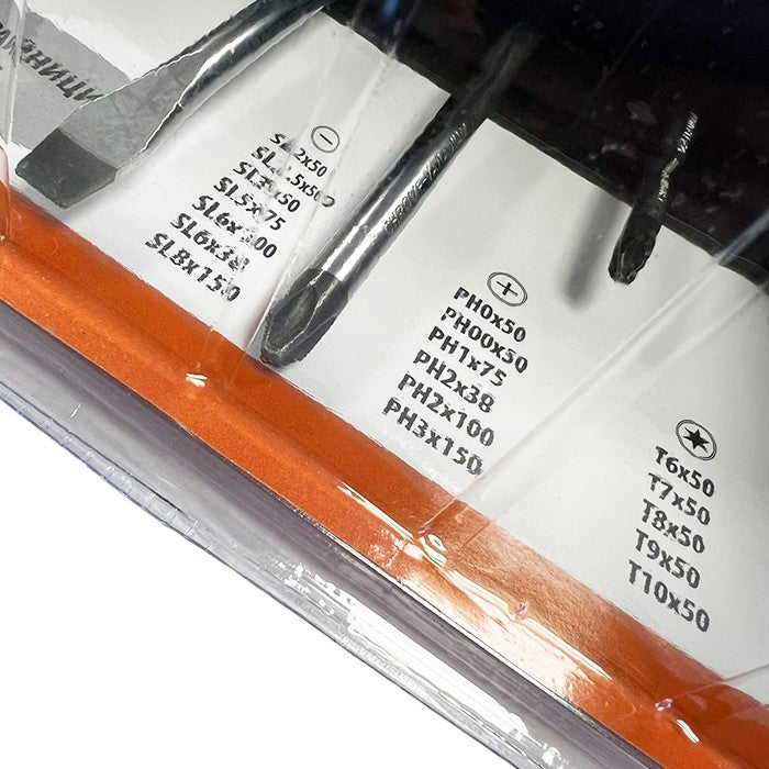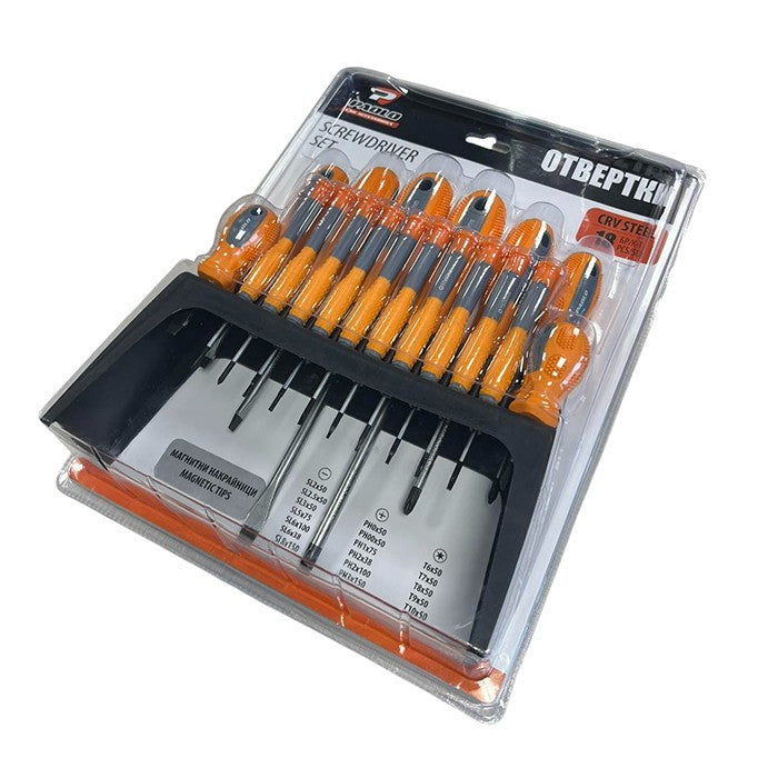 Комплект плоски, кръстати и TORX отвертки.