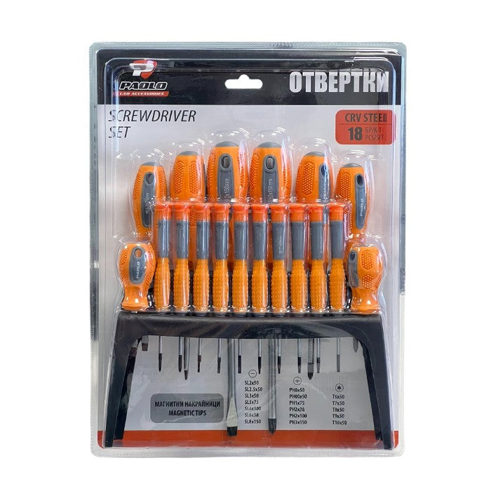 Комплект 18 броя отвертки със стойка.