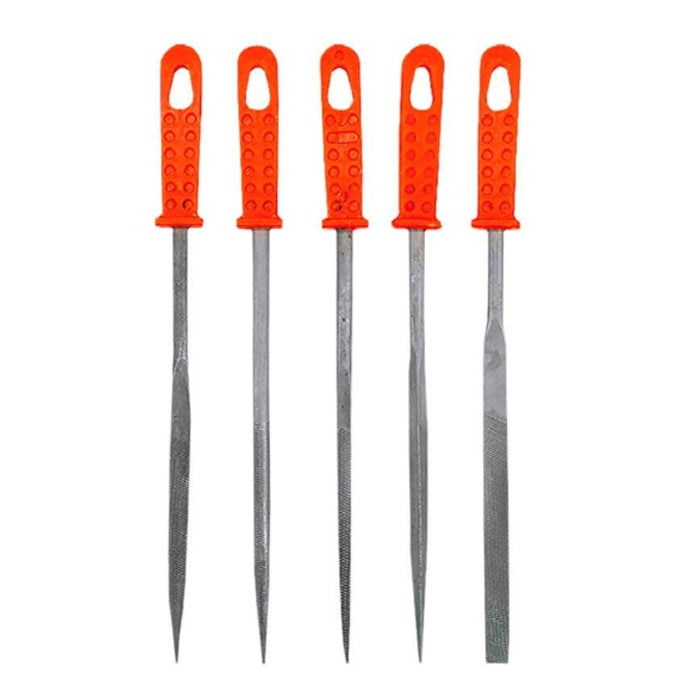 Универсален комплект от 5 висококачествени пили, подходящи за обработка на метал, дърво и пластмаса. Изработени от закалена стомана, те осигуряват дълъг експлоатационен живот, висока ефективност и прецизна работа. Ергономичните дръжки с противоплъзгащо покритие осигуряват комфорт и стабилен захват при всякакви приложения.