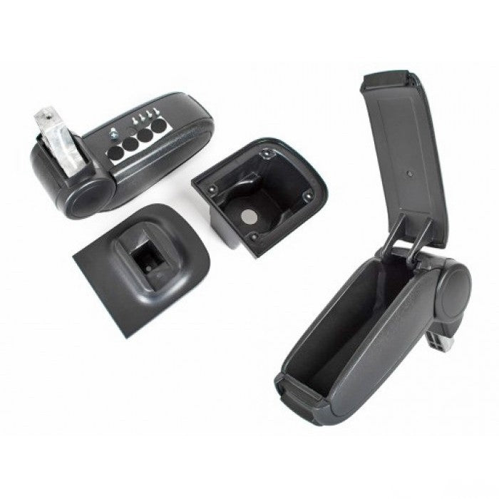 В комплекта са включени видии и болт за сглобяването на подлакътника с пластмасовата поставка, но няма елементи за закрепването към централната конзола.