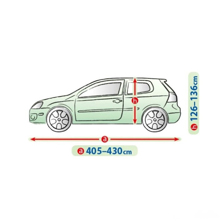 Сравнете формата на вашия автомобил със снимката на продукта (размерите са налични в поле "техническа информация"). Измерете колата си, като обърнете специално внимание на нейната дължина. Крайният размер е обиколката на автомобила, чрез този размер, ще имате по-точна представа кое покривало ще пасне най-добре.