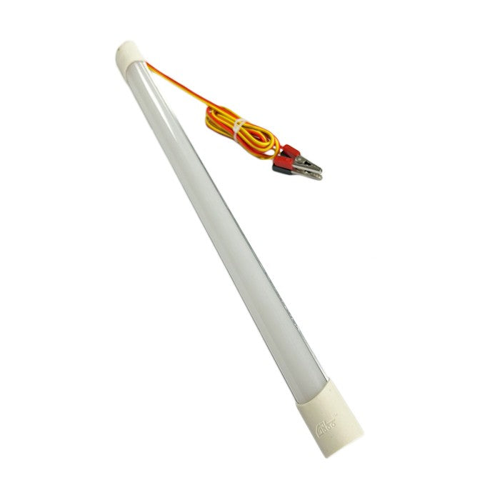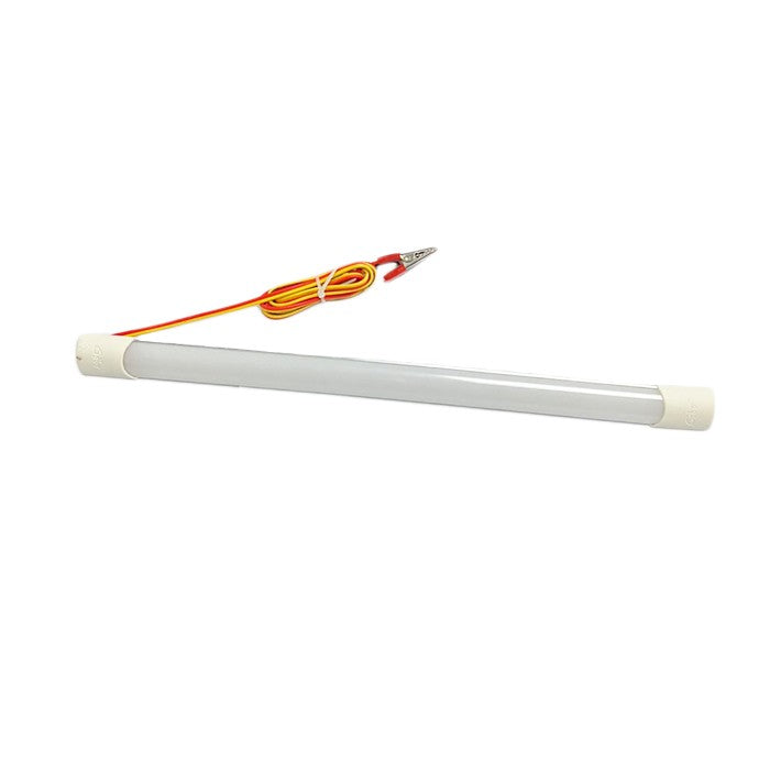 Преносима работна LED лампа с кабел и щипки за акумулатор.
