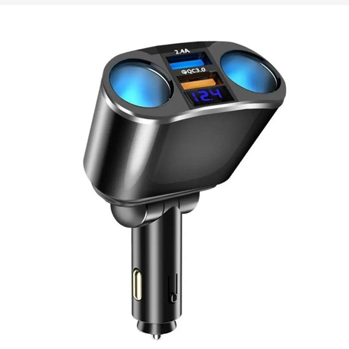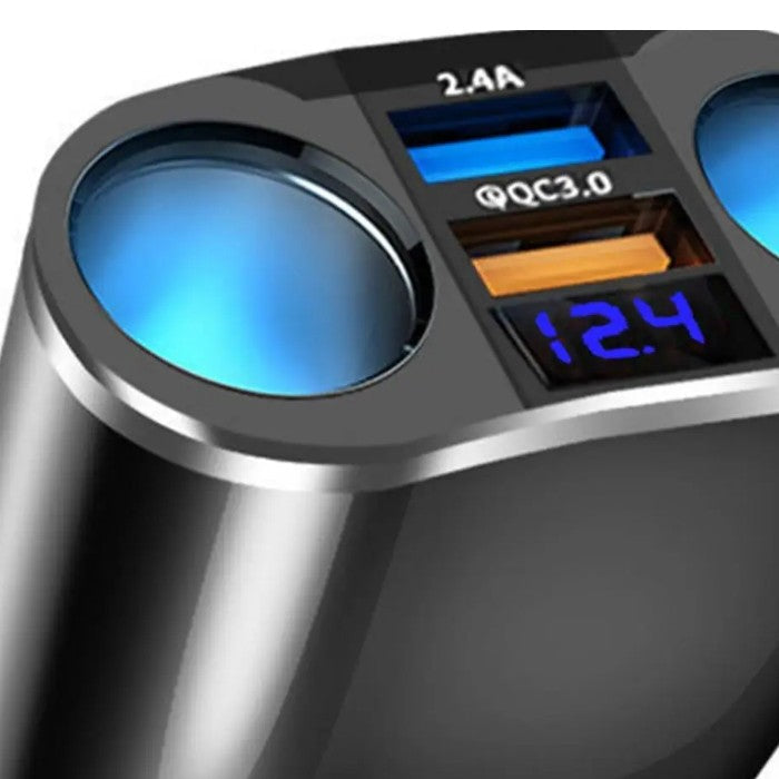 Разклонител с 2 гнезда за запалка и 2 USB порта разположени в двете страни + ВОЛТМЕТЪР