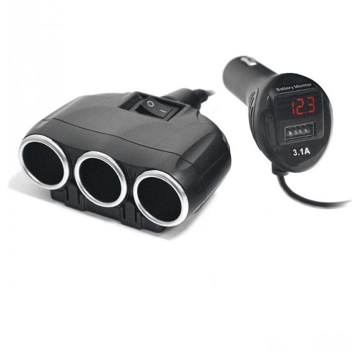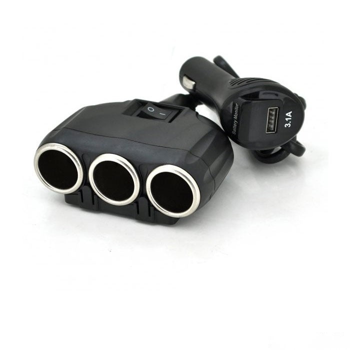 Разклонител за запалка с 2 гнезда и USB порт.