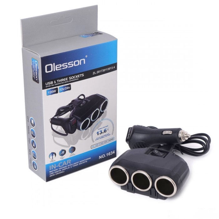 Разклонител за запалка 3-ка+волтметър 1634