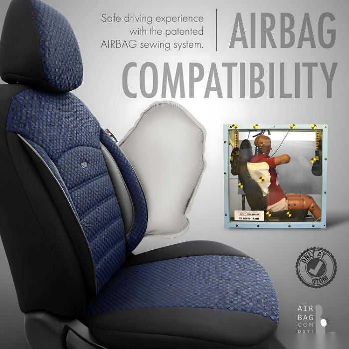 Съвместим със системи Airbag - Тапицерията разполага с TUV сертификат и са съвместими със странични AirBack въглавници. Специален предпазен шев за въздушни възглавници. Предназначени за седалки с въздушни възглавници, като са етикетирани и оборудвани със специални кодове. Всяка тапицерия има различен баркод етикет, потвърждаващ че се използва специална техника на шиене за да даде сигурност на въздушната възглавница. Това гарантира, че тапицериите на OTOM се отличават от другите по-евтини тапицерии на други компании.