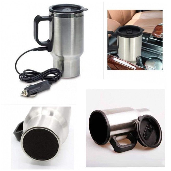 Практична и стилна термо чаша с вместимост 450 мл, предназначена за използване в моторни превозни средства. Съвместима е с повечето поставки за чаши и се захранва чрез 12V гнездо (запалка), като поддържа напитките топли с температура до 60°C – идеална за кафе, чай или вода по време на път.Външната обвивка е изработена от висококачествена неръждаема стомана, която осигурява здравина, дълготрайност и елегантен външен вид. Чашата е снабдена с капак против разливане и удобен дизайн, подходящ за употреба в движение.