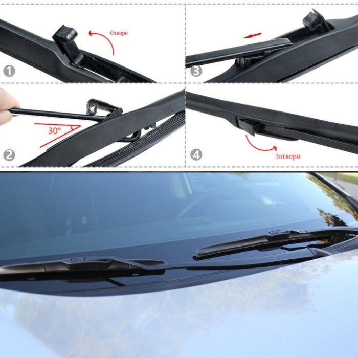 Автомобилна чистачка с хибридна технология и аеродинамичен дизайн.